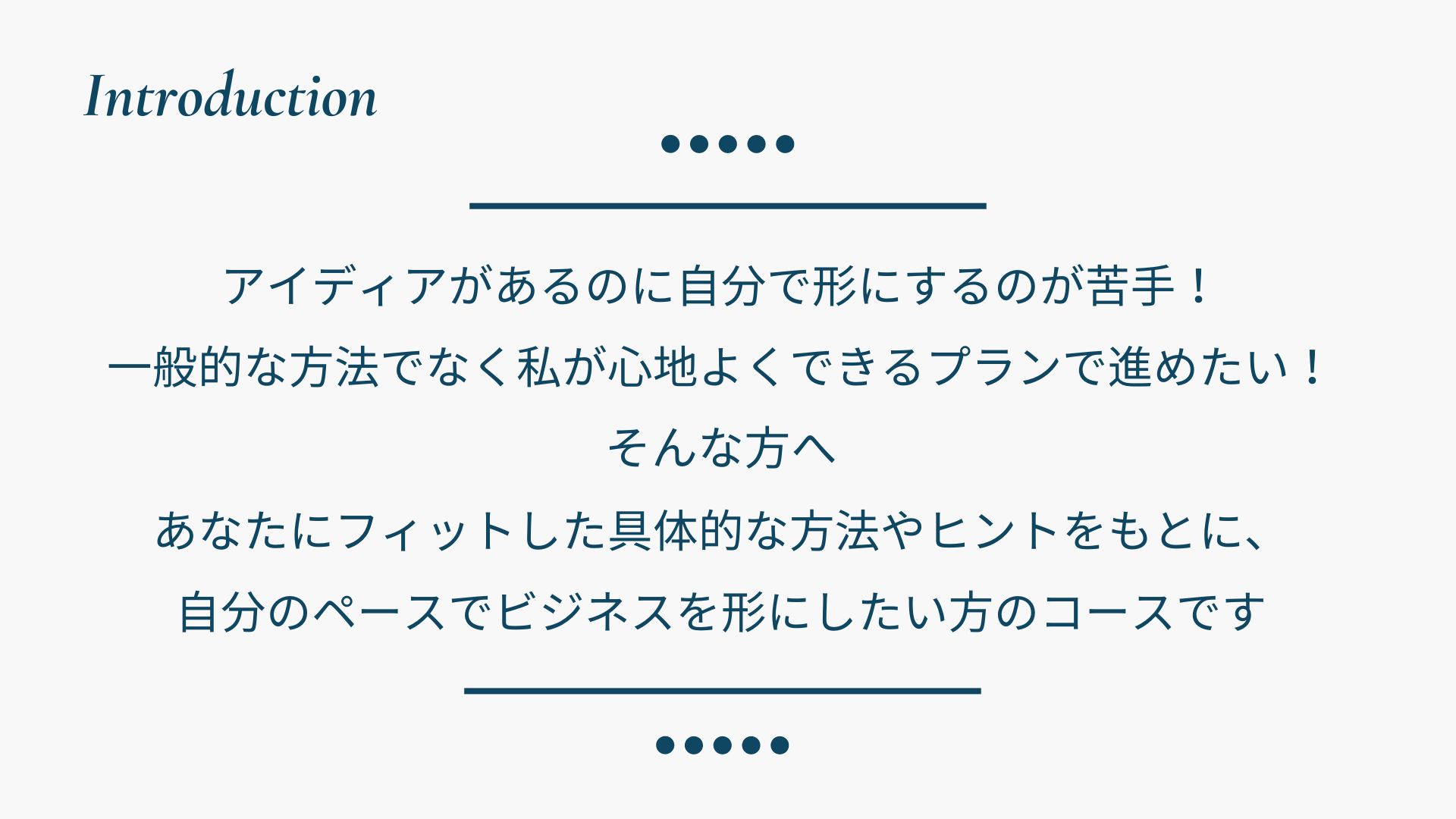 なぜなら、『大人のジャストフィット起業』は、苦手なことに止まり、頭の中の案を形にできずにいる方が、できない・わからないを手放し、好きや得意を活かせるメインのお仕事に集中できるようビジネスをリスタートするサポートプログラムだからです。
