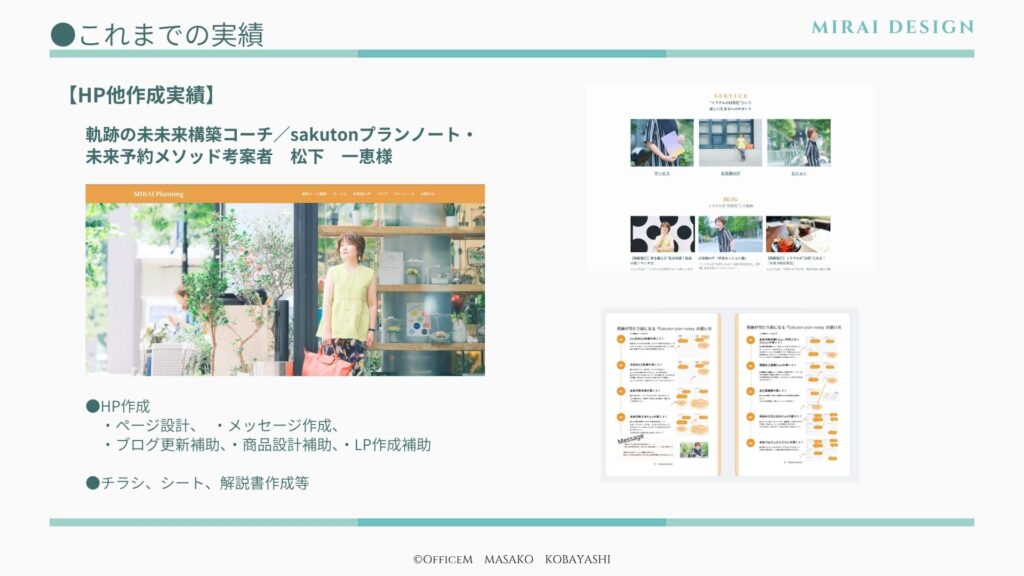 そんな時、友人が雅子さんとHPを作成したものをみて、”私も・・・”と思い、HP作成のサポートをお願いすることにしました。